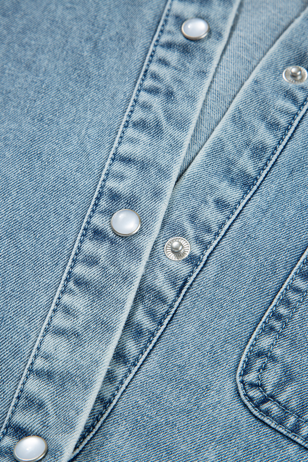 This lightweight dress features long sleeves with frilled smocked cuffs and heart button closures for a subtle touch of charm. The stitched waist detail enhances your silhouette, flowing into a flared skirt for effortless movement. A classic shirt collar and a single chest pocket complete the design, balancing style with practical elements. Ideal for adding a polished yet playful element to your wardrobe. Cotton/Polyester/Viscose