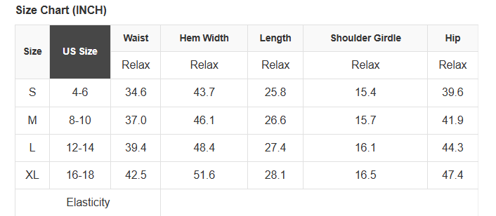 See size chart for approximate measurements.