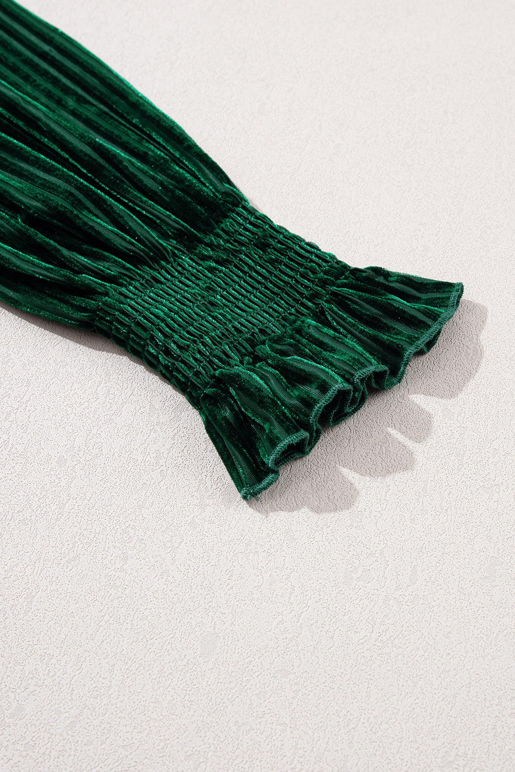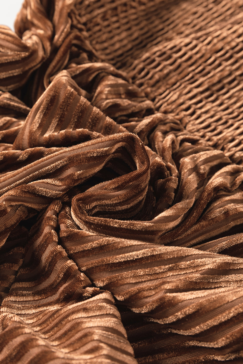 This blouse combines elegance with a tactile ribbed texture for added depth. Its smocked design accentuates the bust with a flattering shape, while the A-line cut complements various body types. The square neckline and graceful bubble sleeves complete this sophisticated, stylish piece. Polyester/Spandex
