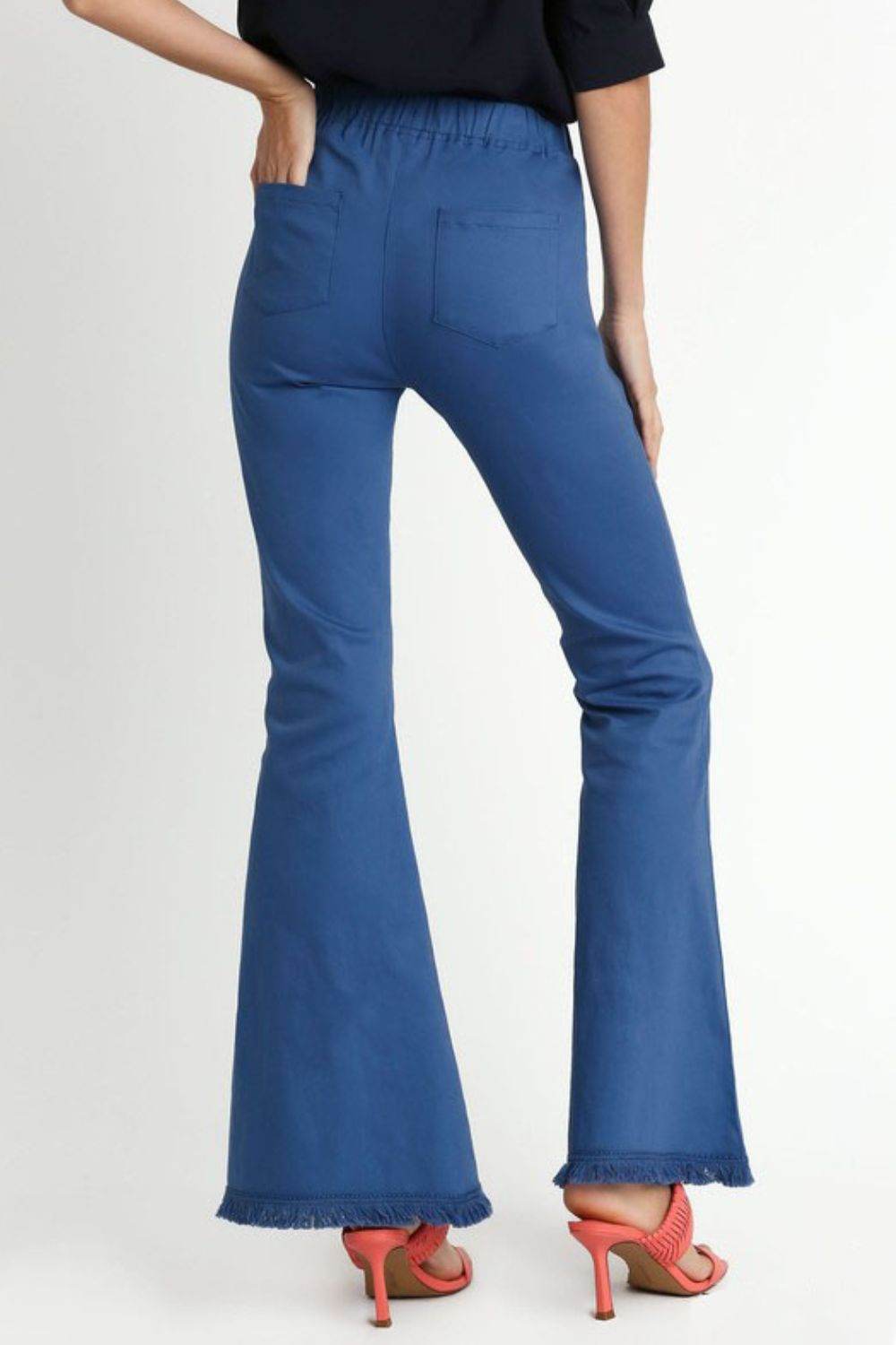 Make a statement with these Wide Flare Leg Stretch Pants featuring a trendy frayed hem for a unique and stylish touch. The wide flare leg silhouette offers a flattering and on-trend look. Perfect for adding a touch of edge and personality to your outfit.