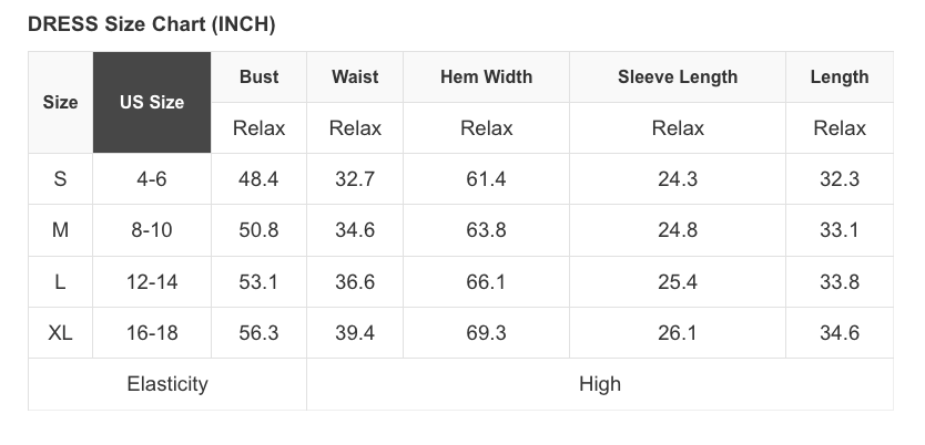 See size chart for approximate measurements
