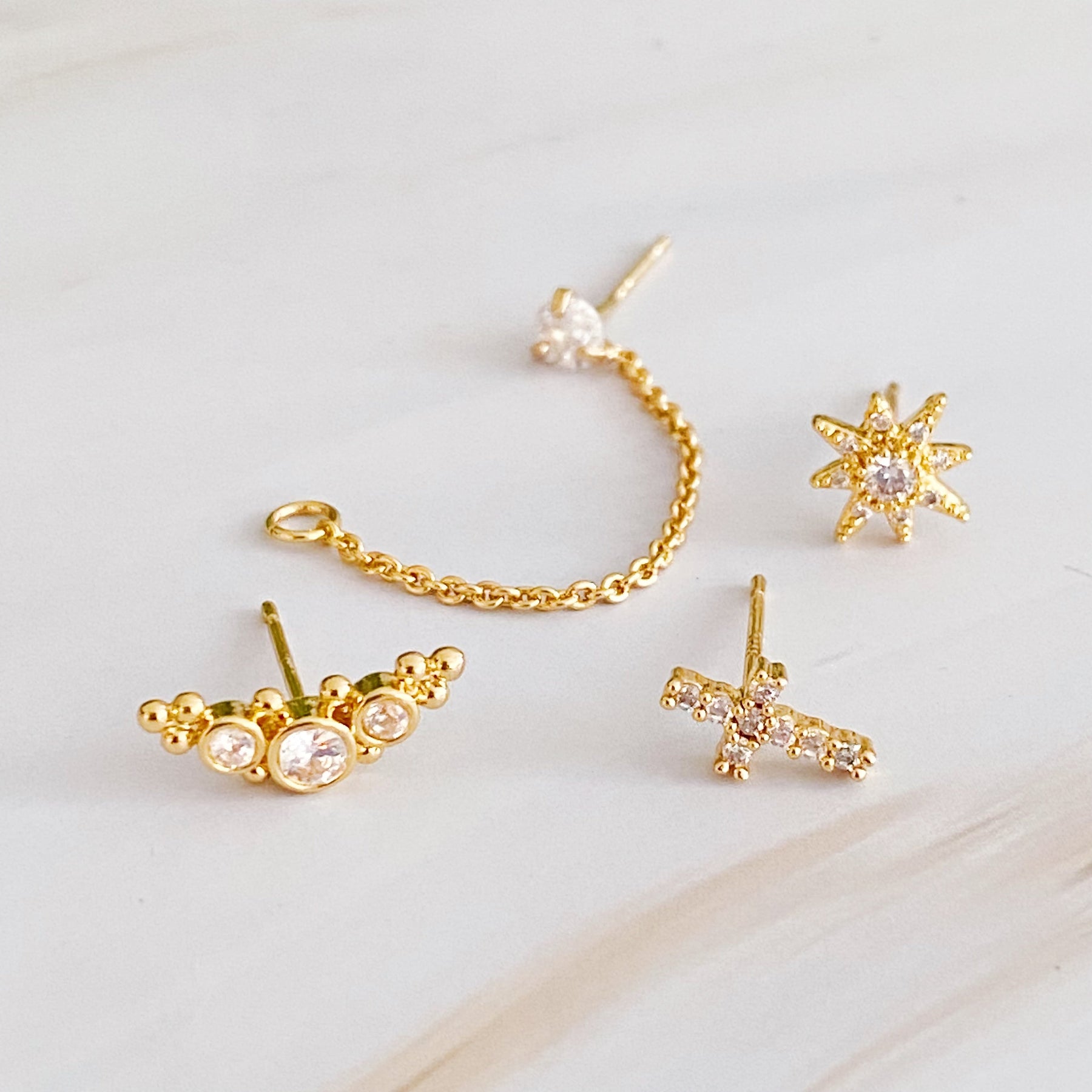Add a touch of sparkle to your look with our Be The Shine Linked Earrings Set Of 3. Featuring an understated glam and edge, these earrings are perfect for multi piercing ears. Comes in pretty Ellison + Young logo card packaging.
