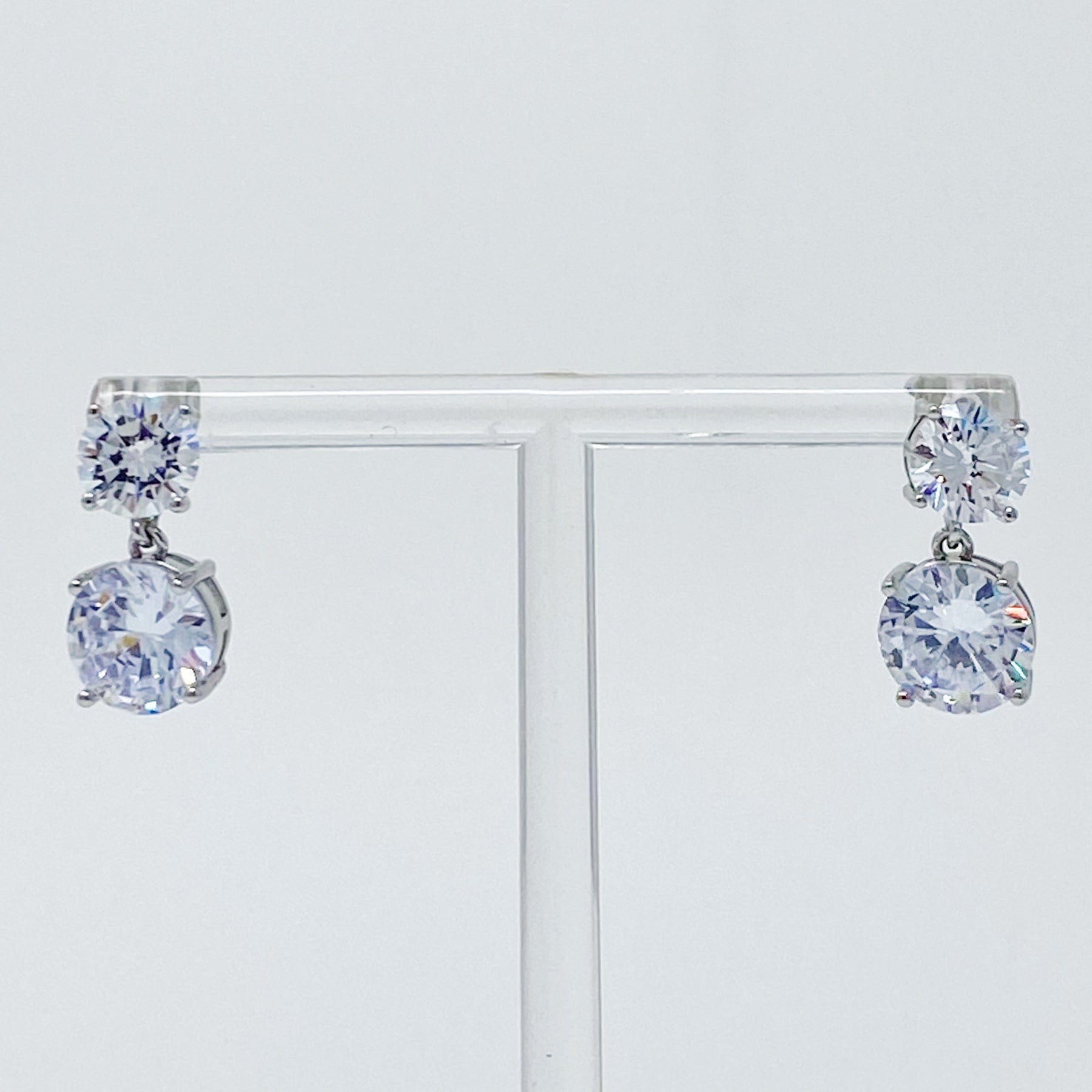 Dazzle your look with these stunning Double Diamond Dangle Earrings. Crafted with high quality cubic zirconia stones for full sparkle, these earrings boast a sophisticated and timeless design. Showcasing great details, these earrings are perfect for any occasion from weddings to everyday wear.