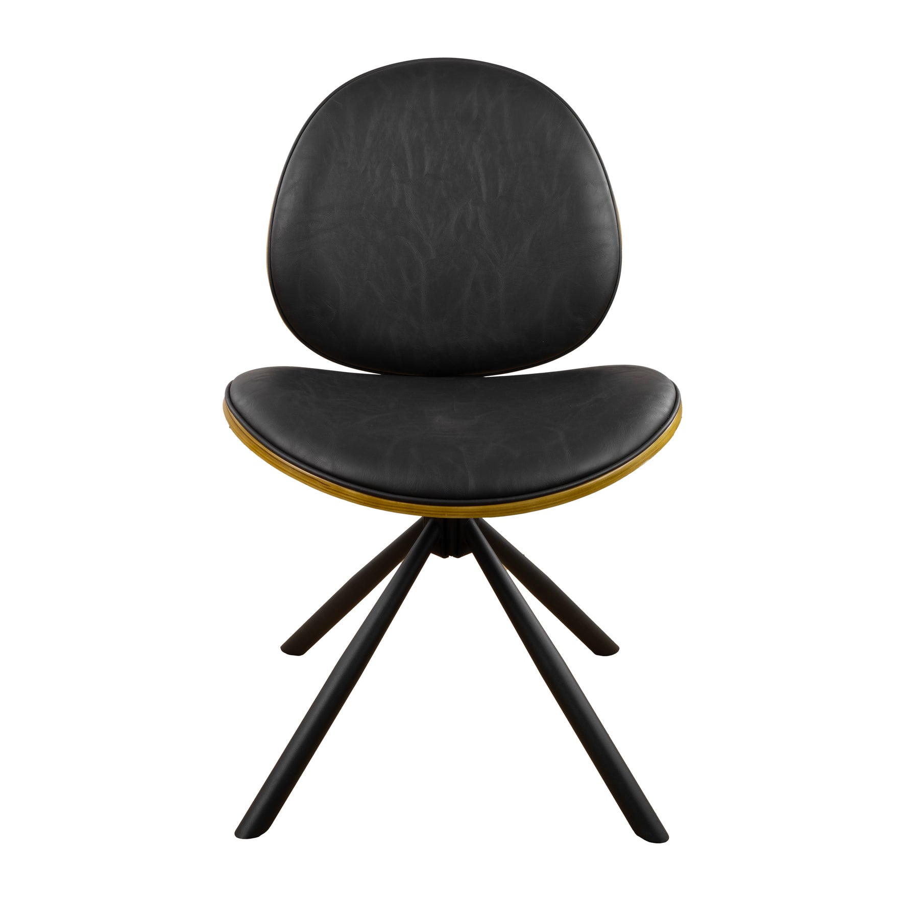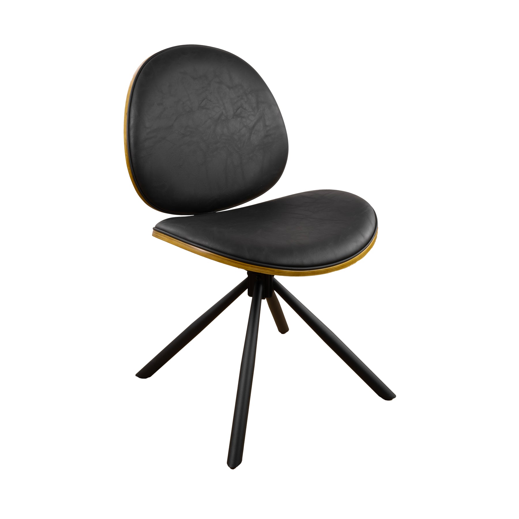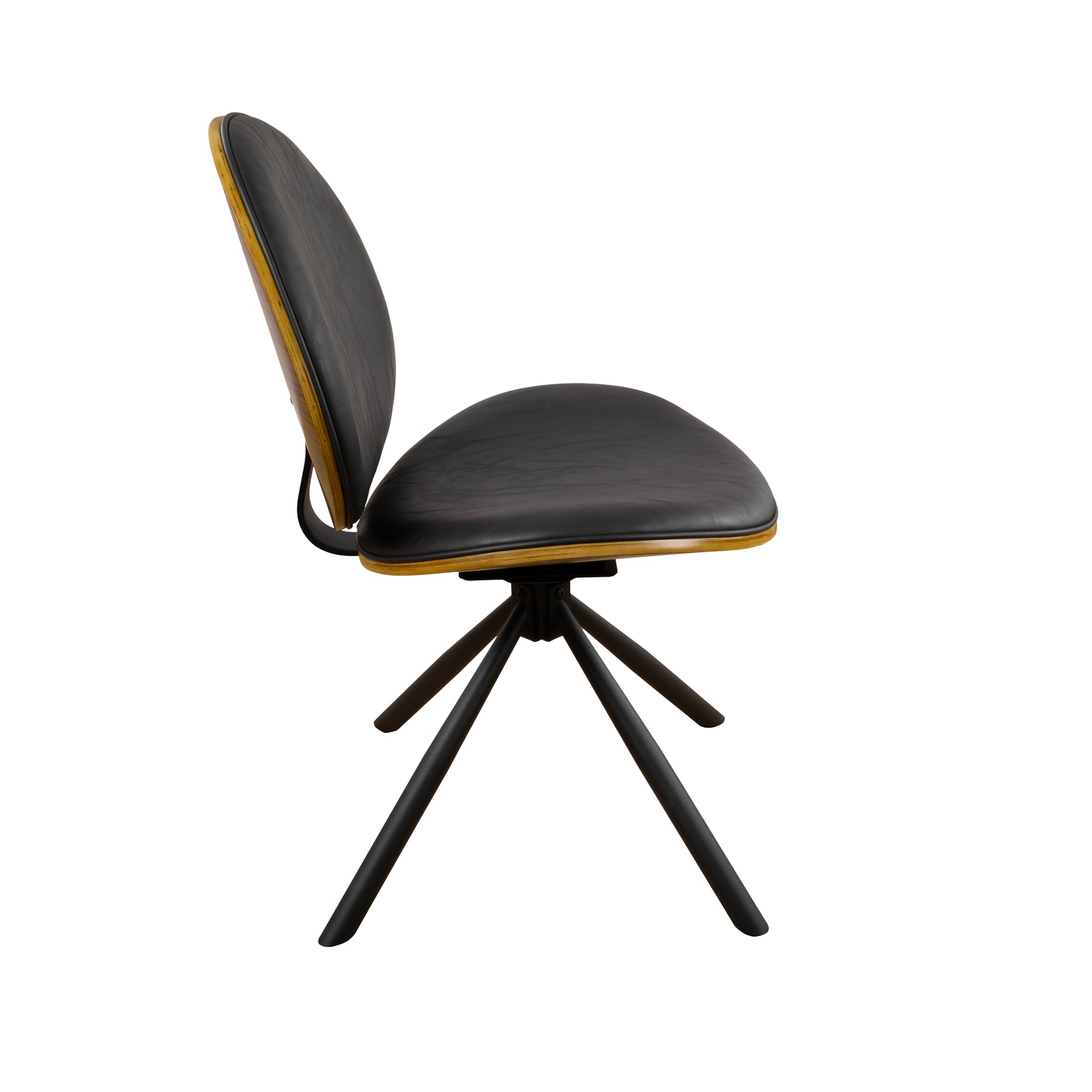 Bring this comfortable black upholstered faux leather and metal dining side chair to your table to enjoy long lasting quality time with your family and friends. The side chair has no arms so it can easily fit around the table. Can also be used as an accent in living room or bedroom. Complete with a slightly curved solid back, this chair not only looks good but is comfortable. A swivel feature allows this chair to turn, adding versatility to your seating. Dining chairs are a great way to compliment your kitchen or dining room but can also be used in the foyer, hallway, or any room you might need extra seating. 32.87-inch h x 21.06-inch w x 23.62-inch d.
