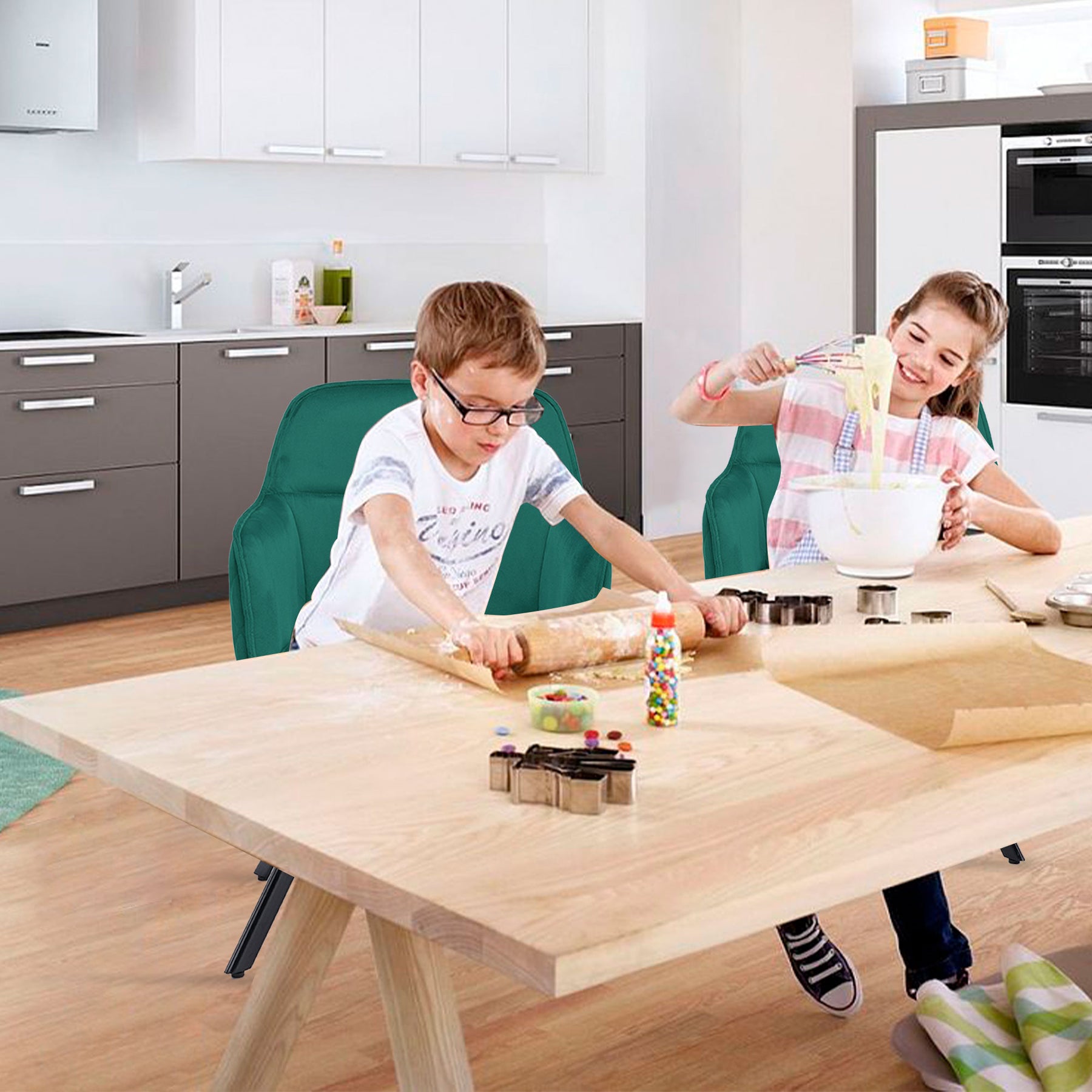 This tufted green and black velvet and metal dining arm chair is not only good looking, but it also provides long lasting support. The addition of a tufted design gives this chair some extra special flair. The solid back gives this chair its unique style. Dining chairs are a great way to compliment your kitchen or dining room but can also be used in the foyer, hallway, or any room you might need extra seating. 34.84-inch H x 23.62-inch W x 18.7-inch D