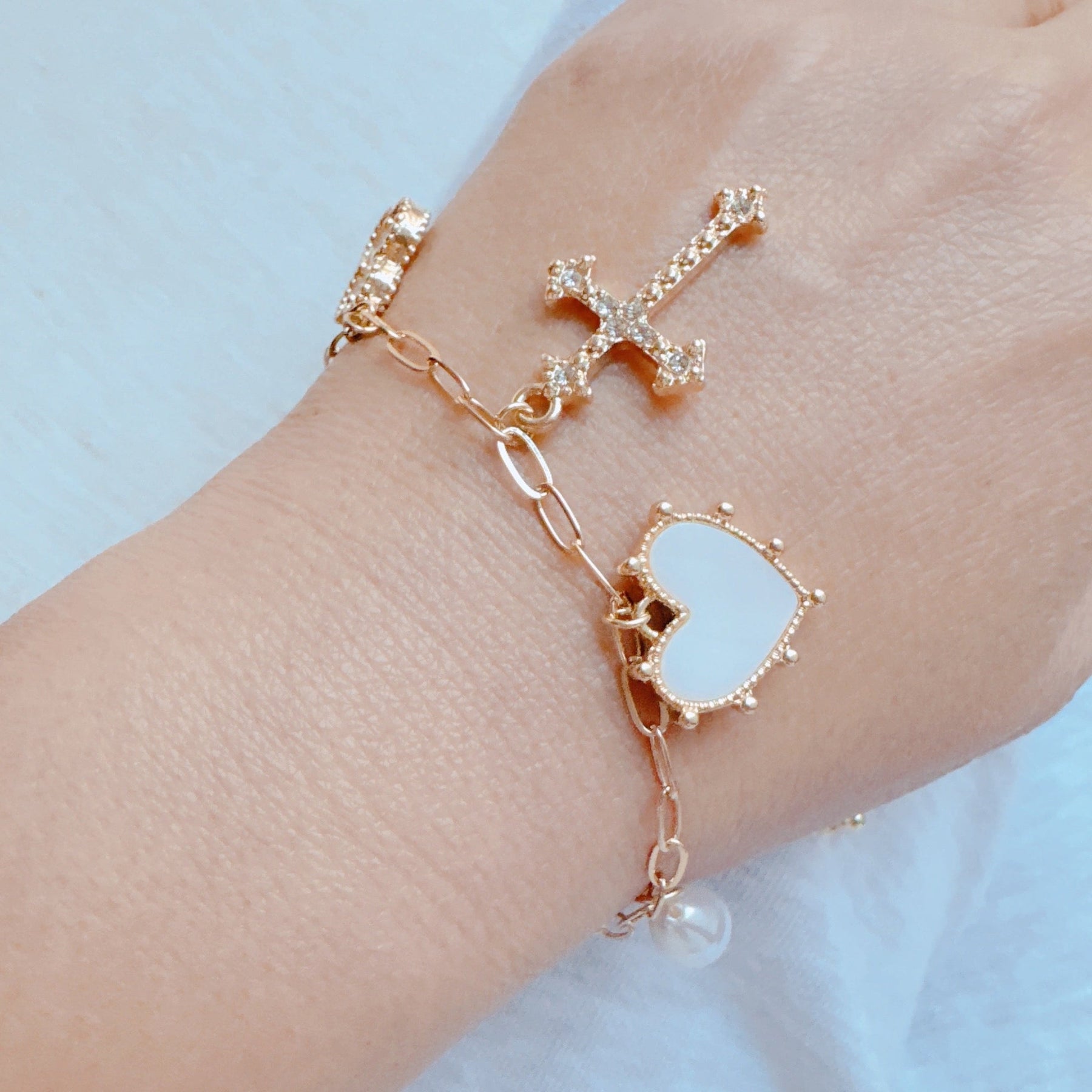 Introducing our Cross Clover Multi Charm Bracelet, featuring a modern and unique design that combines crosses and clovers for a charming touch.