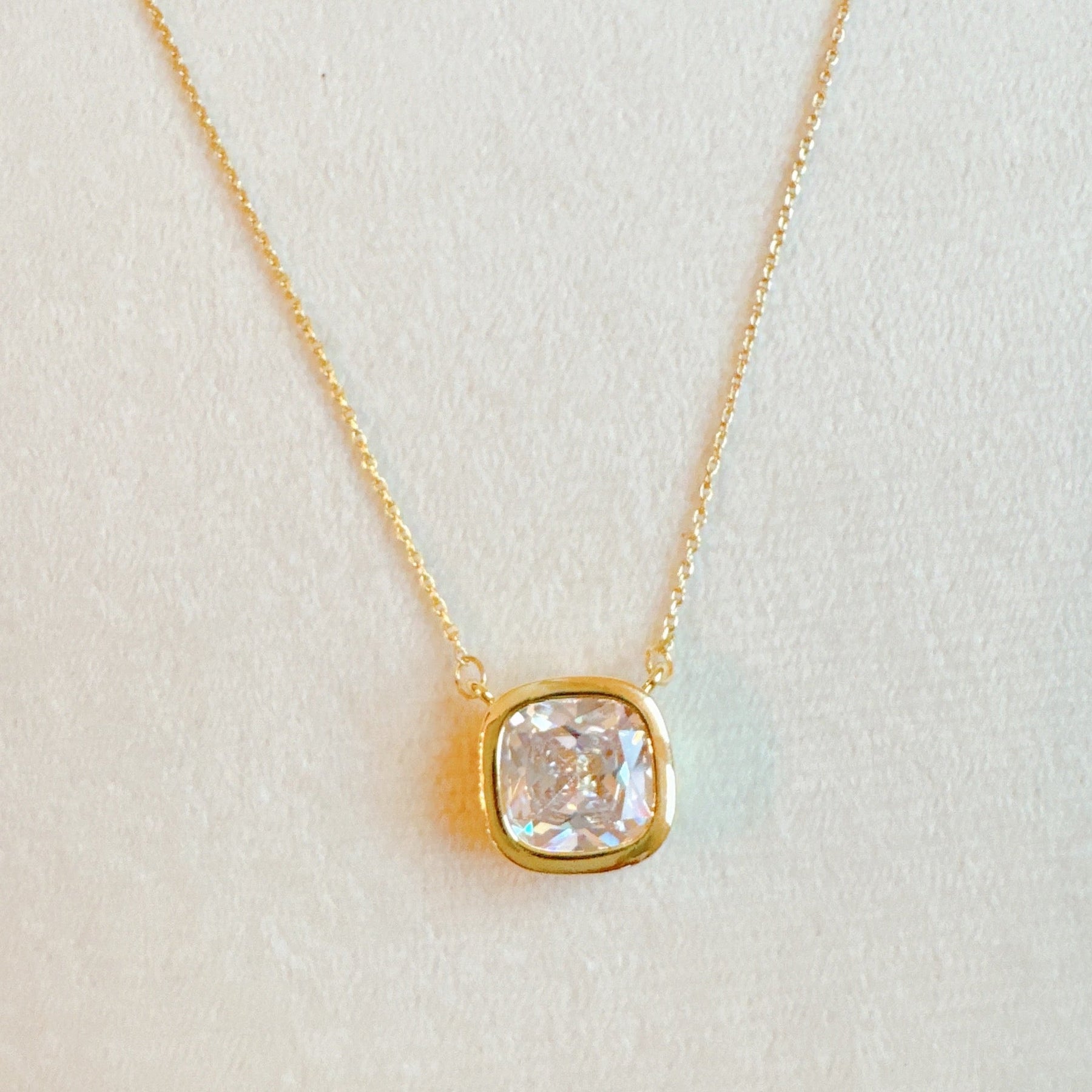 Enhance your style with this exquisite cushion cut diamond necklace. Its elegant design and sparkling shine make it a must-have accessory for any outfit. Add it to your jewelry collection for a touch of sophistication.