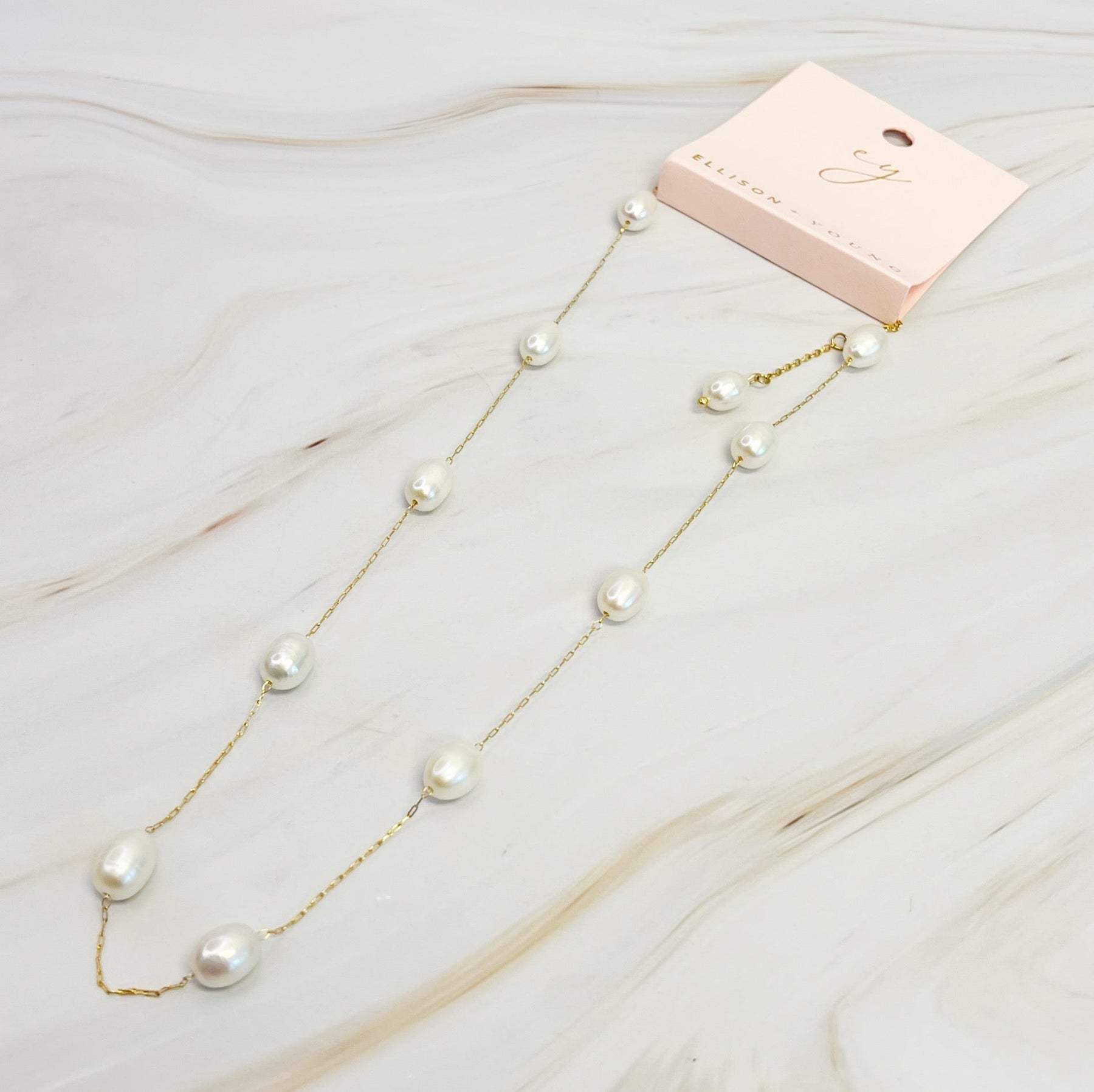 Discover elegance with this necklace, the beautiful freshwater pearls are delicately strung on a dainty chain, showcasing their timeless beauty. Perfect for any occasion, this necklace adds sophistication to any outfit.