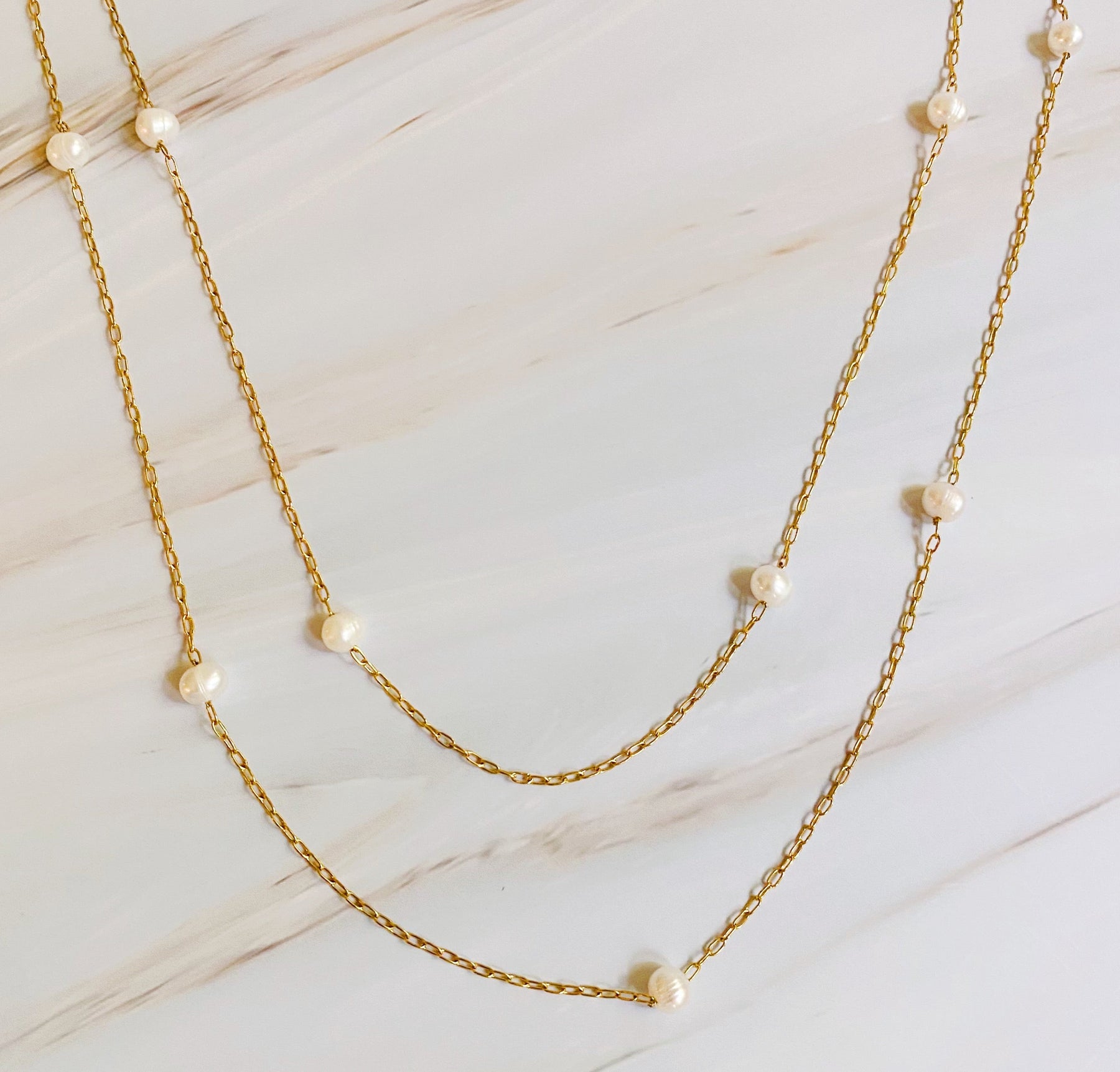 *Daily Elegance with slightly larger pearls(approximately 0.4") with link chain.