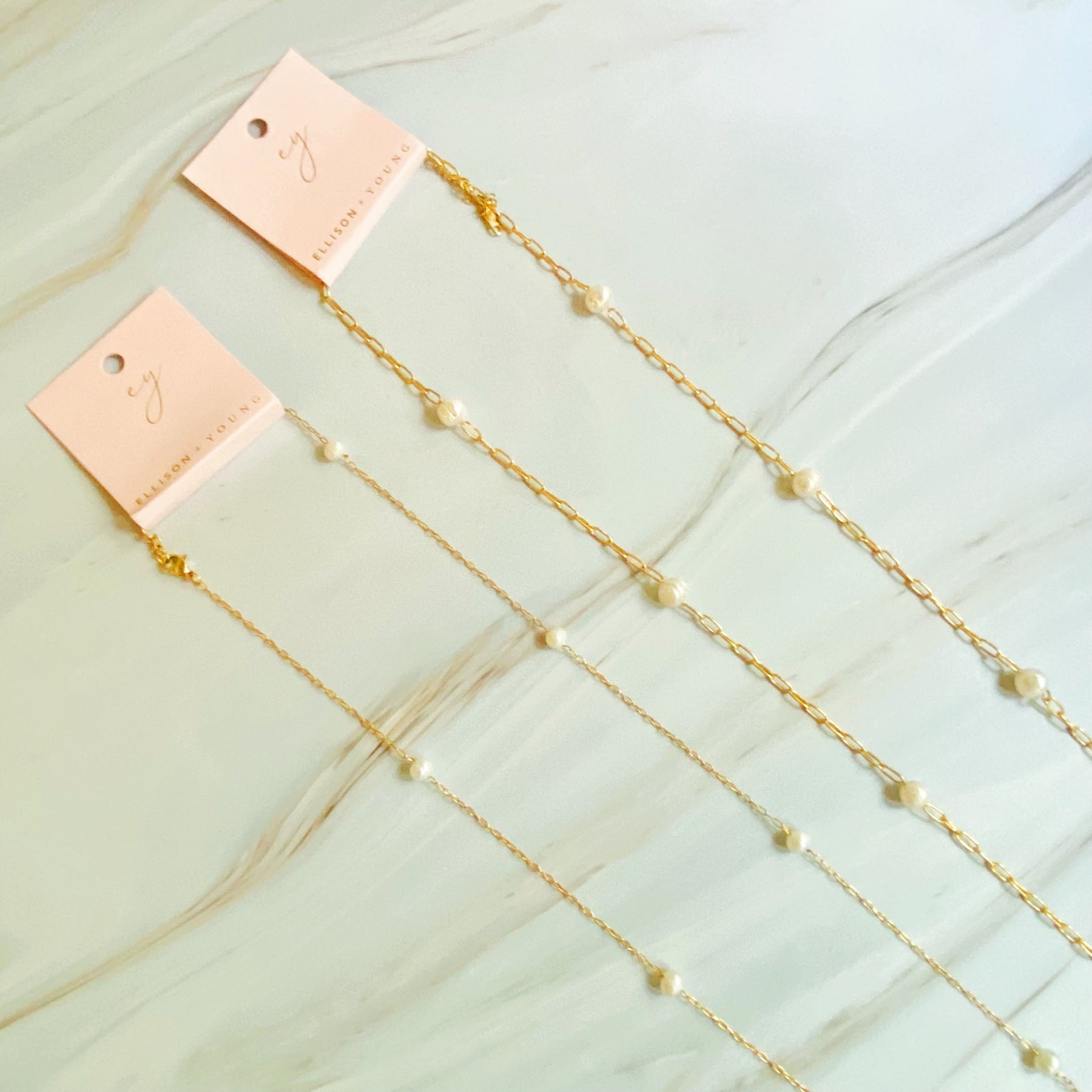 *Dainty Chic with smaller pearls(approximately 0.25") with dainty chain
