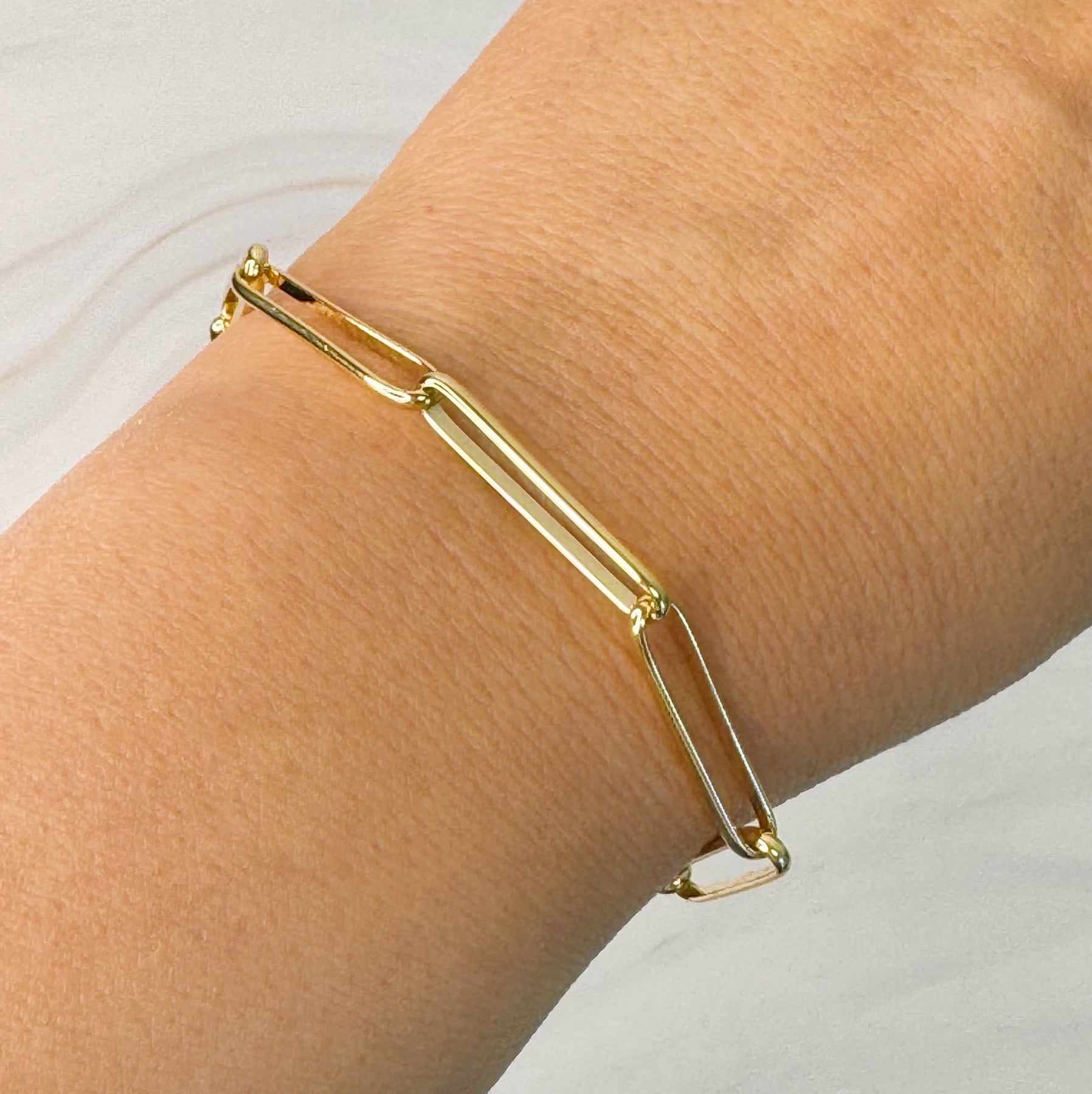 Discover the perfect statement piece with our sleek Perfect Clip Link Chain Bracelet. Each clip is linked together to create a full body, making it a unique and edgy addition to your jewelry collection. Its understated style allows for easy layering with other pieces, making it a must-have for those who want to stay both classy and trendy.