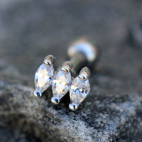 * Cartilage / Tragus Earring with Triple Marquise Cut CZ