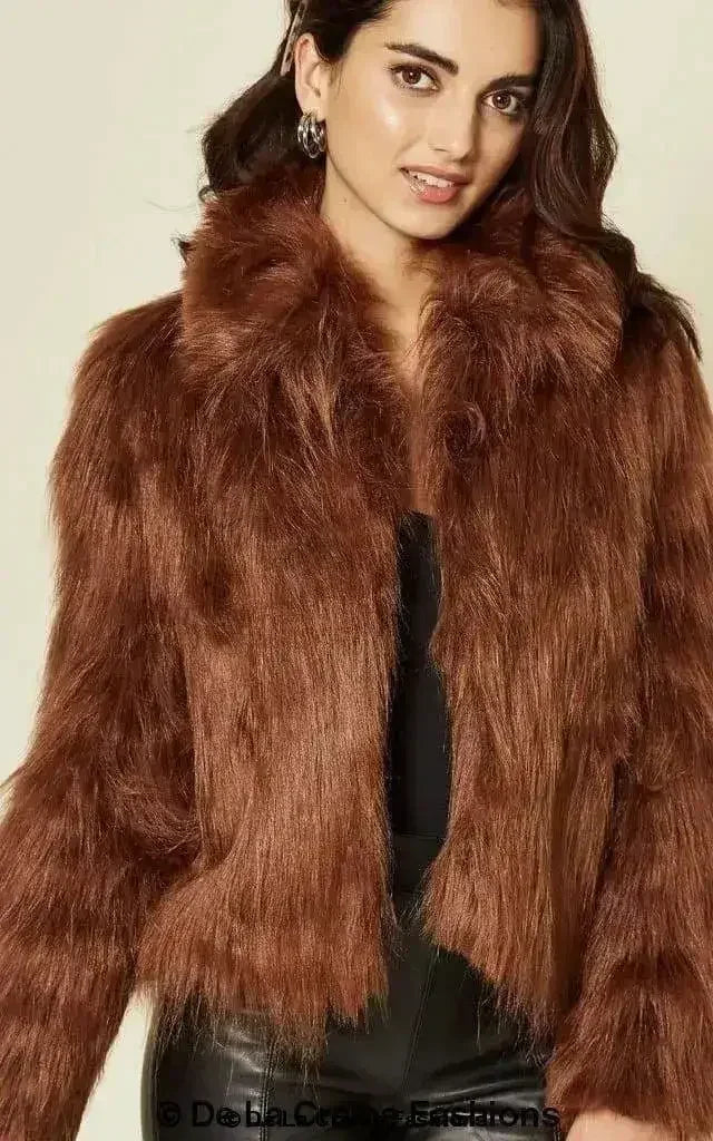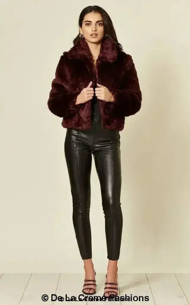 De La Creme Womens Faux Fur Cropped Aviator Bomber