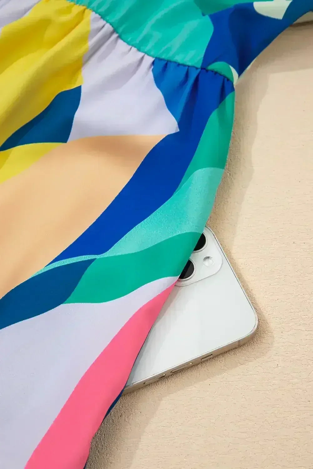 Embrace the artistic vibe of the abstract print, adding a playful and vibrant element to your wardrobe for any casual or semi-formal occasion.