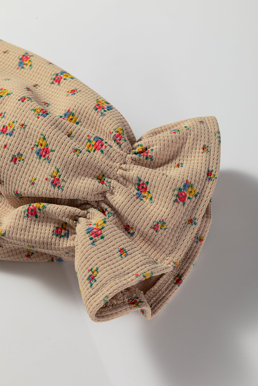 Boho Floral Plaid Patchwork Ruffle Sleeve Waffle Shacket