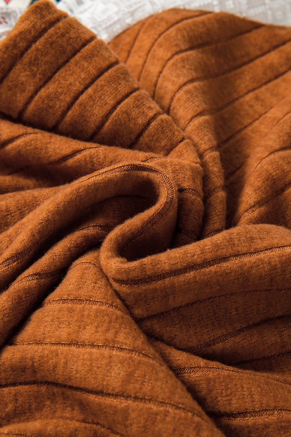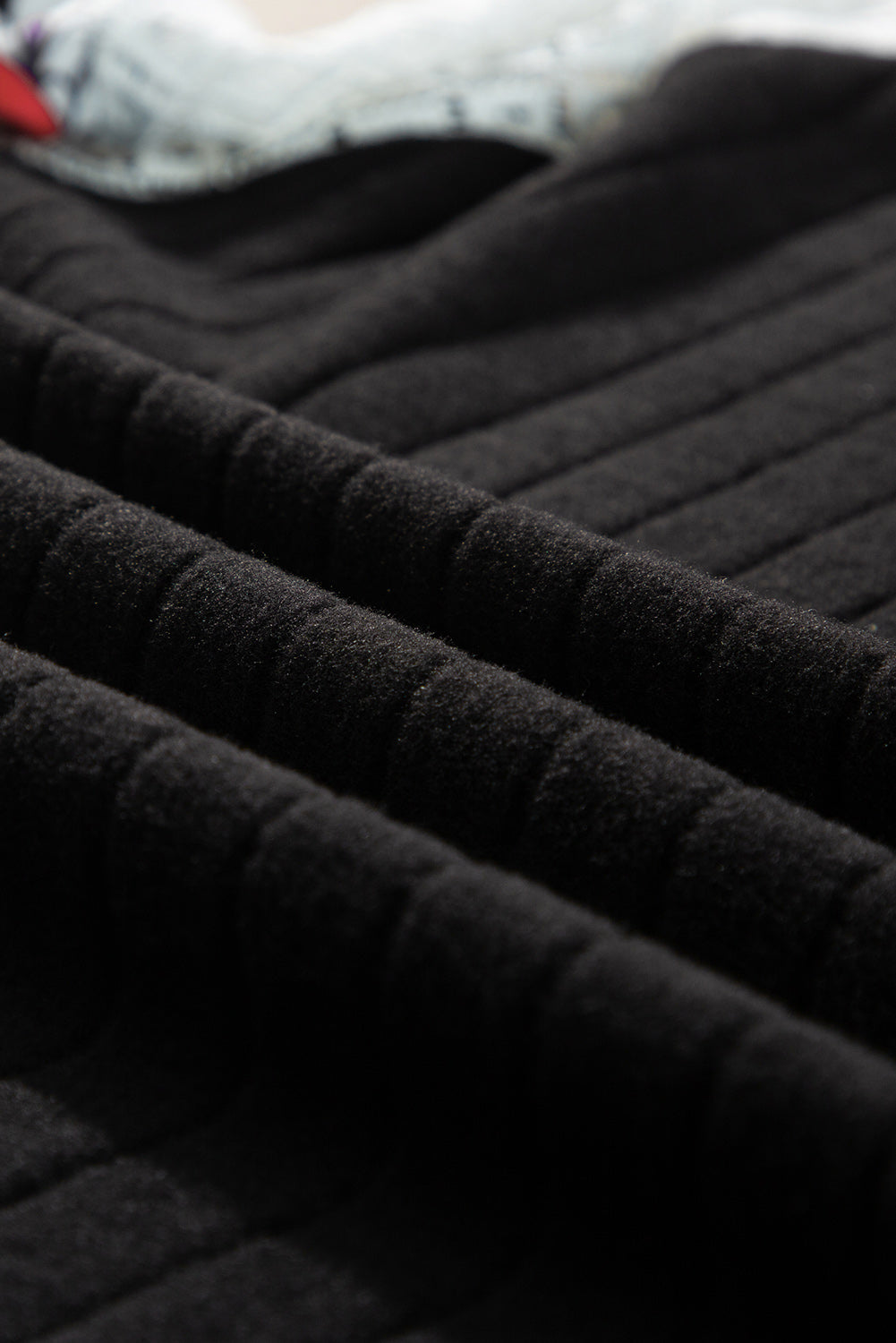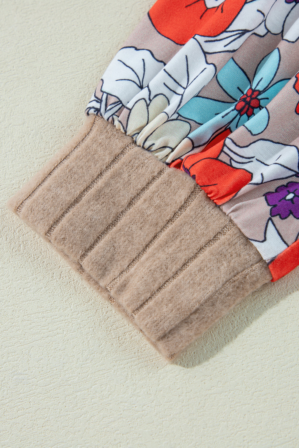 Floral Ribbed Patchwork Long Sleeve Blouse