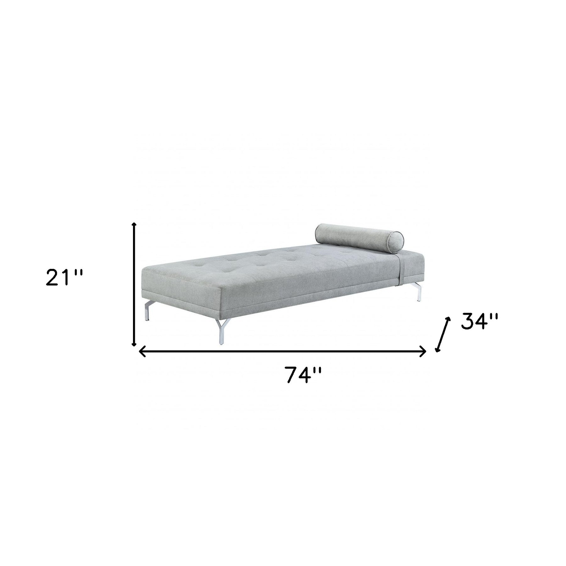 Add an air of fashion to your space with this fabulous 74-inch gray velvet sofa and toss pillow with black legs. This solid color standard is made from sturdy and resilient velvet that has a warm and rich look and is a super soft and comfortable to the touch. Solid colors give you lots of decorative options and are easy to work into your decor scheme. Sinuous springs construction gives this piece strong support and makes it comfortable to sit even for long periods of time. Designed with an updated and refreshing style, this sofa is armless to create that unique contemporary or modern aesthetic. The tufted stitching pattern adds visual interest and fine designer detailing. A great showpiece for your room, this sofa is a must have. 21-inch H x 74-inch W x 34-inch D