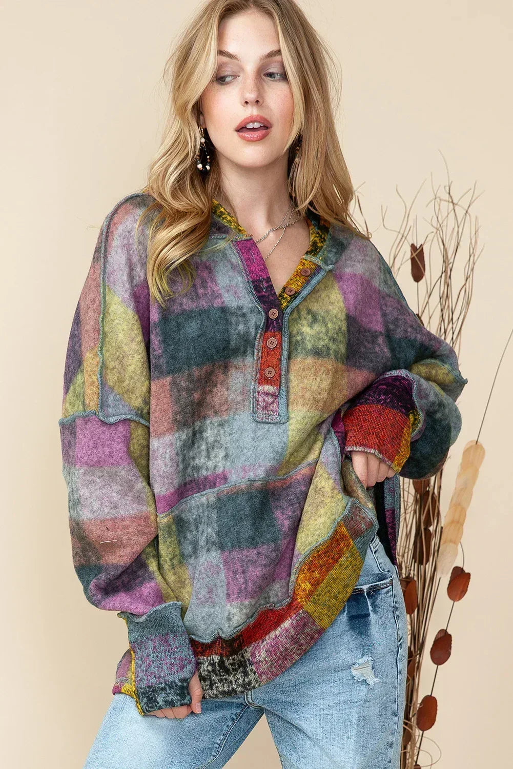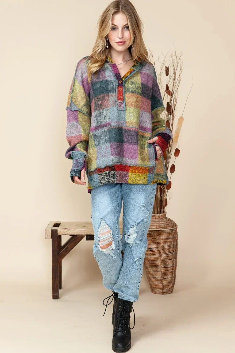 ✔ Trendy Plaid Print – Eye-catching multicolor brushed check design