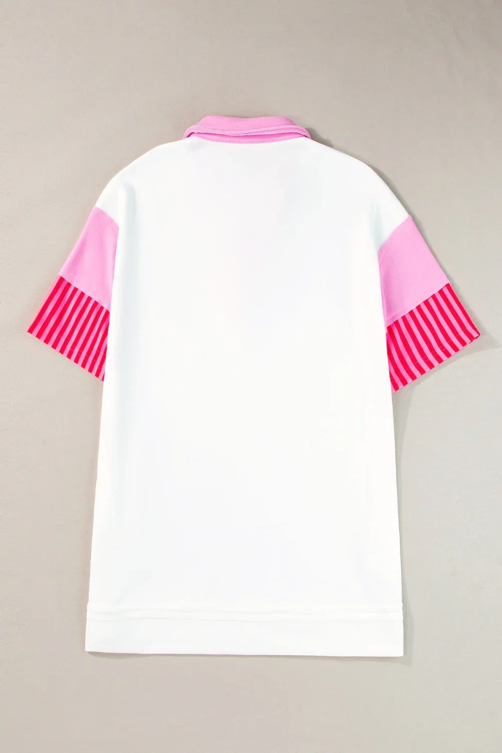 White Stripe Colorblock Sleeve Collared Pop of Color Neckline Dress