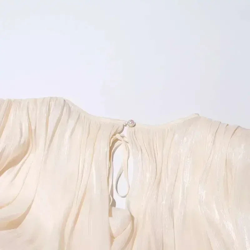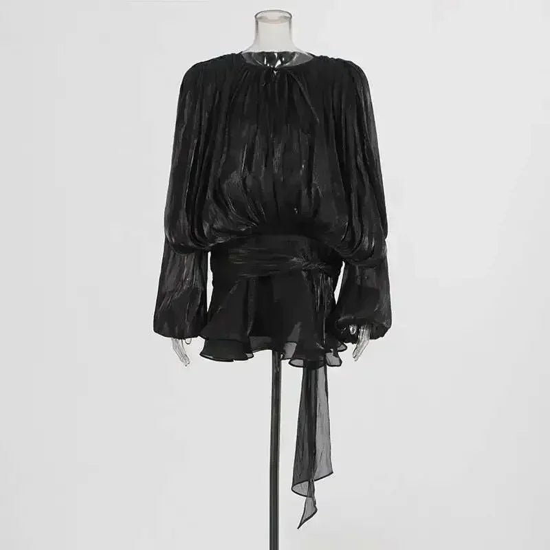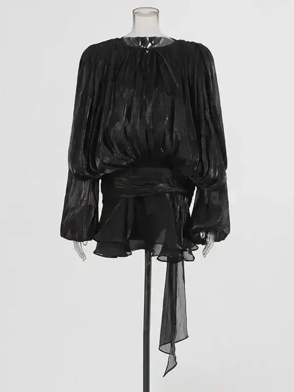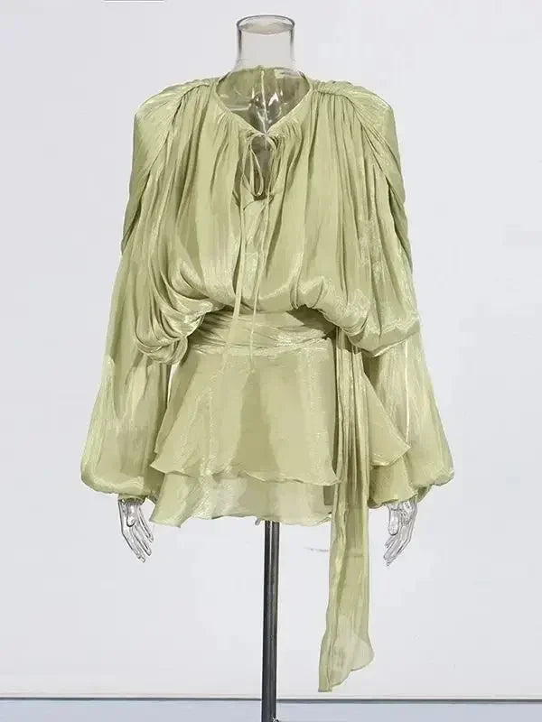Design: V-Neck | Spliced Lace-Up Detail | Draped Decoration